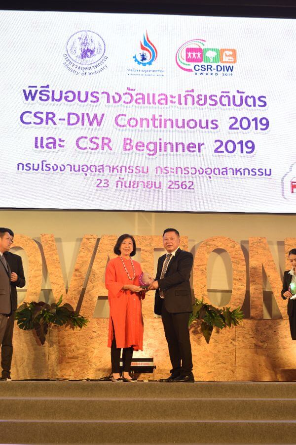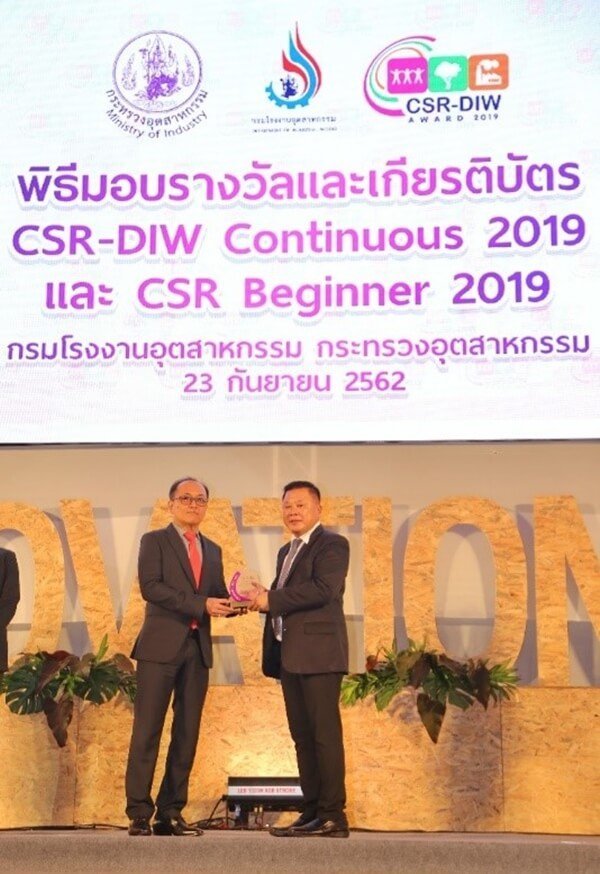 CSR-DIW Award 2019 from the Ministry of Industry, in recognition of being responsible enterprise for society.